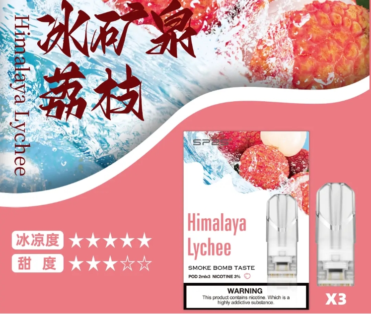 味道描述:冰礦泉荔枝煙彈結合了冰礦泉水的清涼感和荔枝的甜美風味,带來清爽和甜美的口感。煙霧中充满了冰凉的礦泉水感覺和甜美的荔枝香氧。